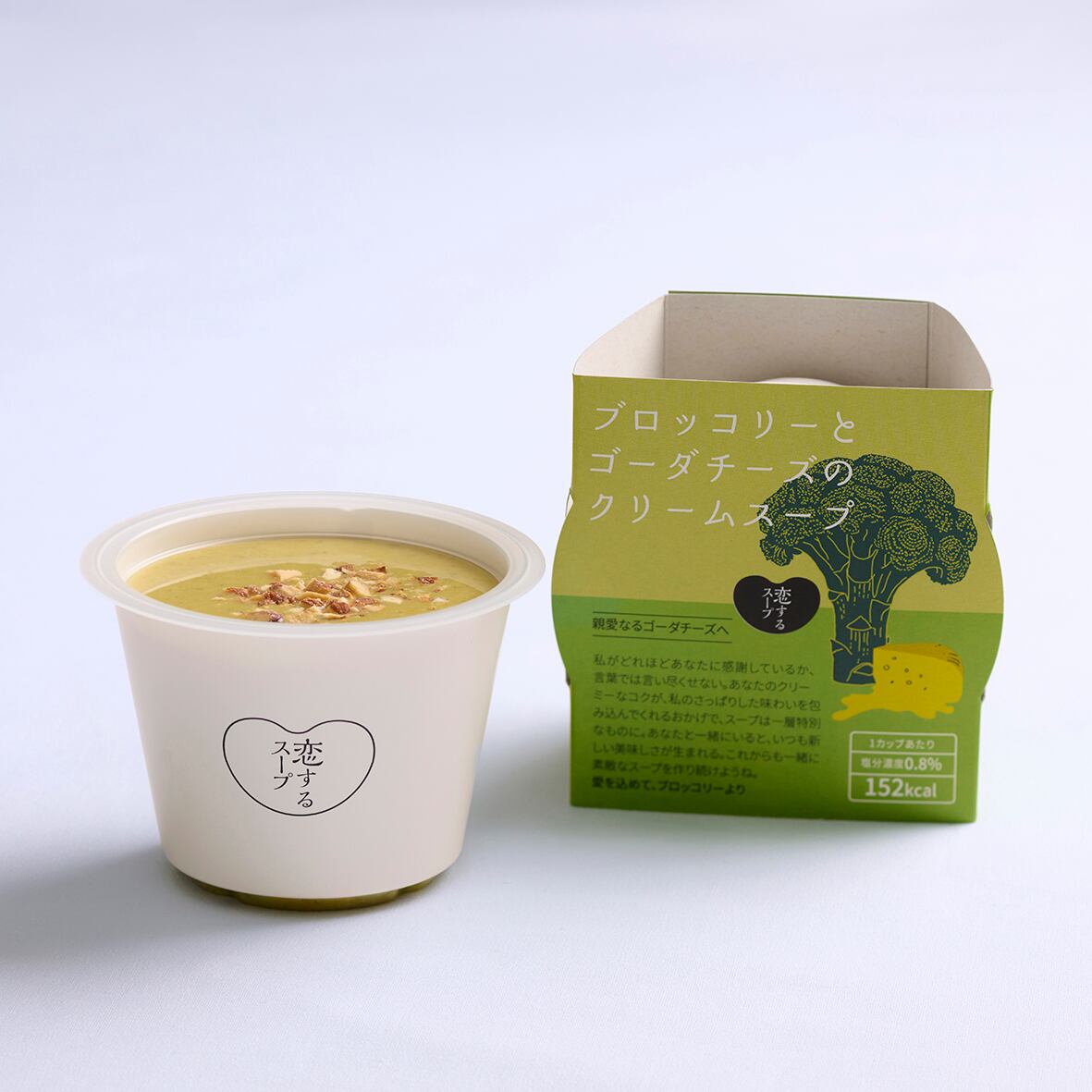肝機能の向上に効果があるとされるスルフォラ ファンを含む「ブロッコリー」と神経組織の保護 に寄与するとされるビタミンBを含む「ゴーダ チーズ」を材料にしたクリームスープです。ブロッ コリーと小松菜を野菜エキス(キャベツ、かぼ ちゃ、玉ねぎ、にんじん)とアーモンドミルク、牛 乳、ゴーダチーズでじっくり煮込みました。食感の アクセントにアーモンドを加え、素材が溶け合う ミルキーなクリームスープに仕上がりました。