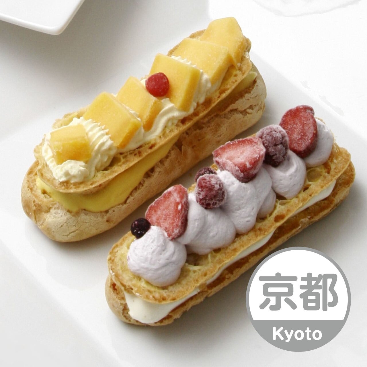 ■原料原産地:シュー皮(国内製造)、イチゴ(中国)、マンゴー(メキシコ、インド)、抹茶(京都府宇治製造)