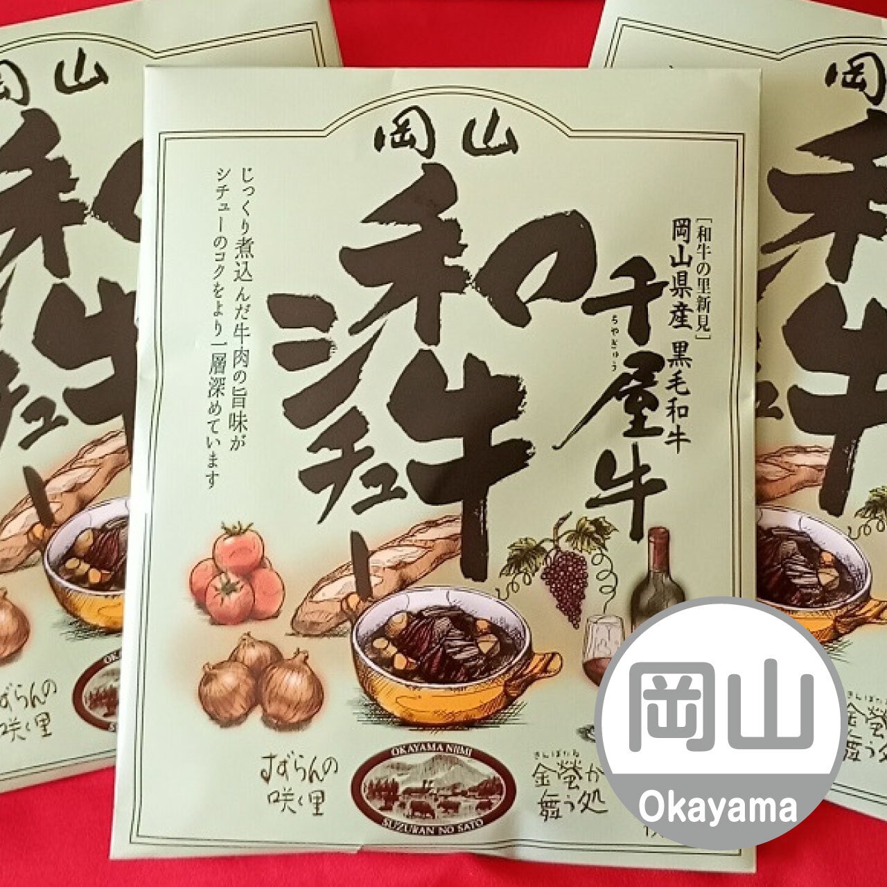 黒毛和牛伝承の地、奥備中新見地域。新見の山から湧き出る天然水と、良質な牧草に恵まれ、のびのびと育った和牛「千屋牛」。 霜降りの味わいは、全国に誇る郷土自慢の逸品です。 そんな千屋牛の美味しさをあますことなく引き出したビーフシチューです。”千屋牛”の良質な牛肉と国産たまねぎをじっくりと時間をかけて煮込みました。”千屋牛”の肉の深い味わいがおいしさをより一層引き立てるコクのあるシチューをお楽しみください。
