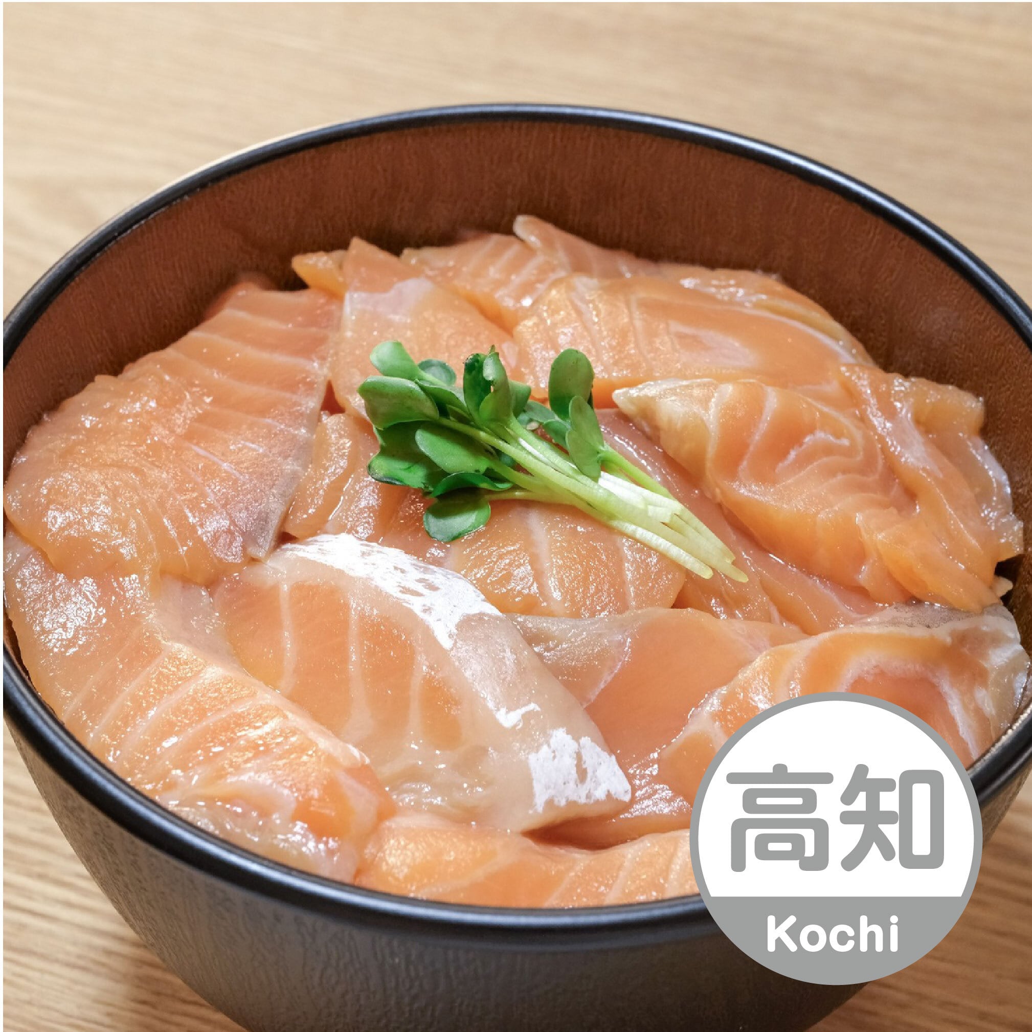 チリ産のアトランティックサーモンで、漬け丼に向いた弾力ある身質のものを使用しております。半解凍で切り身にしたものを“特製タレ”に漬けこみ、短時間のうちに急速低温冷凍した製品です。