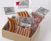 ロングセラーの荒びきウィンナー2種類、生サラミ感覚で美味しいソーセージ、人気の豚タンの燻製のセット