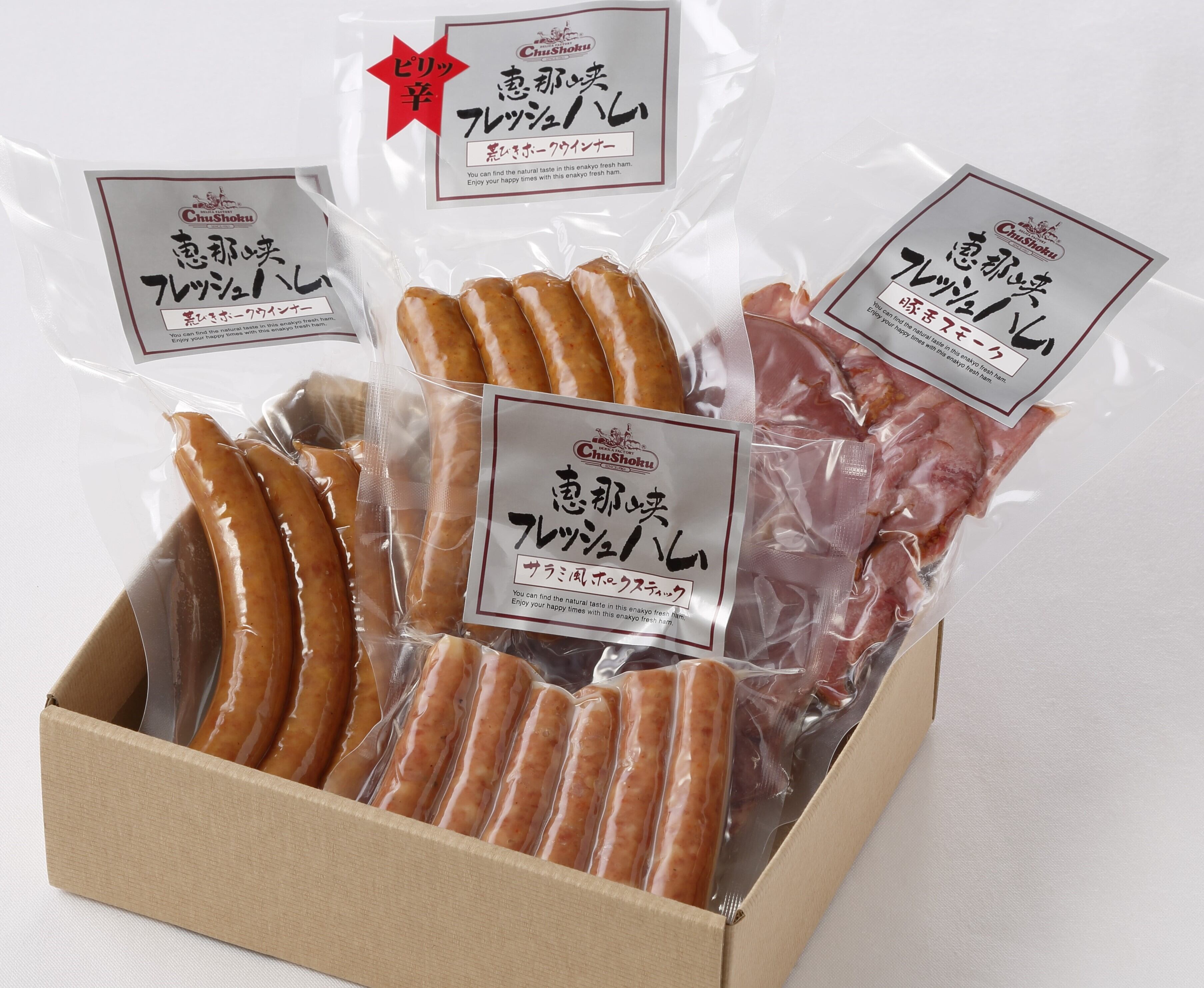 雄大な自然中央アルプスの麓、豊富な水と澄みきった空気の郷。「青い山脈」が眼の前に広がる岐阜県恵那地方でつくり上げました。昔ながらのきめ細やかな工程を守り、最上の素材をたっぷりと熟成して深くコクのある旨味を引き出しています。機械に頼らず、作り手の気持ちを商品に詰め込んでいく、この作業から生み出されたのが『恵那峡フレッシュハムシリーズ』です。