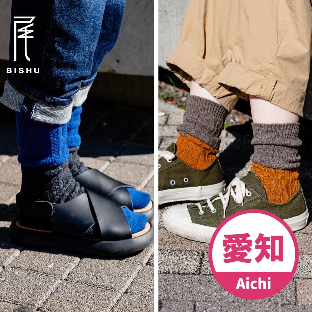 メリノウールの糸を紡ぎ、編んだまさに尾州でうまれた靴下です。