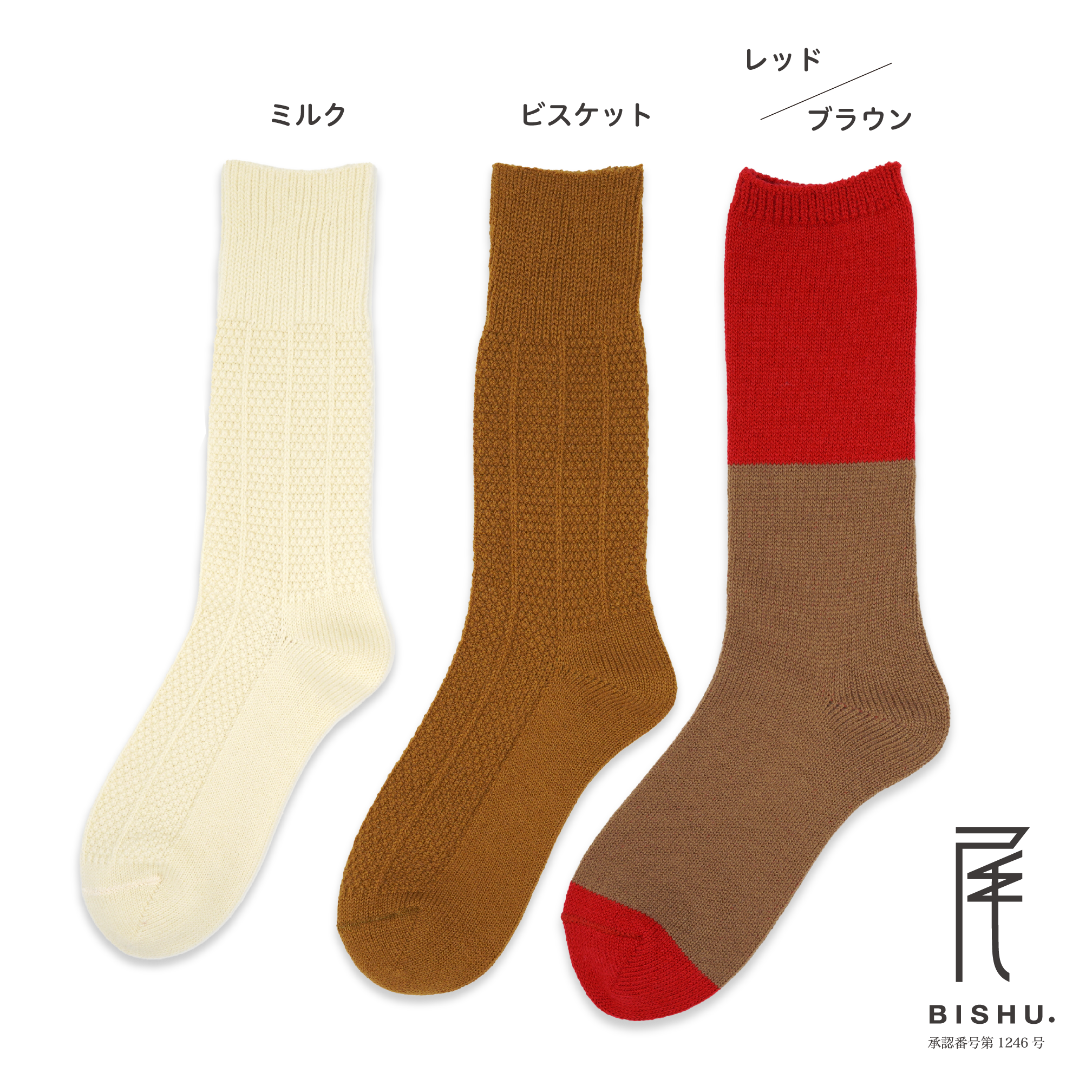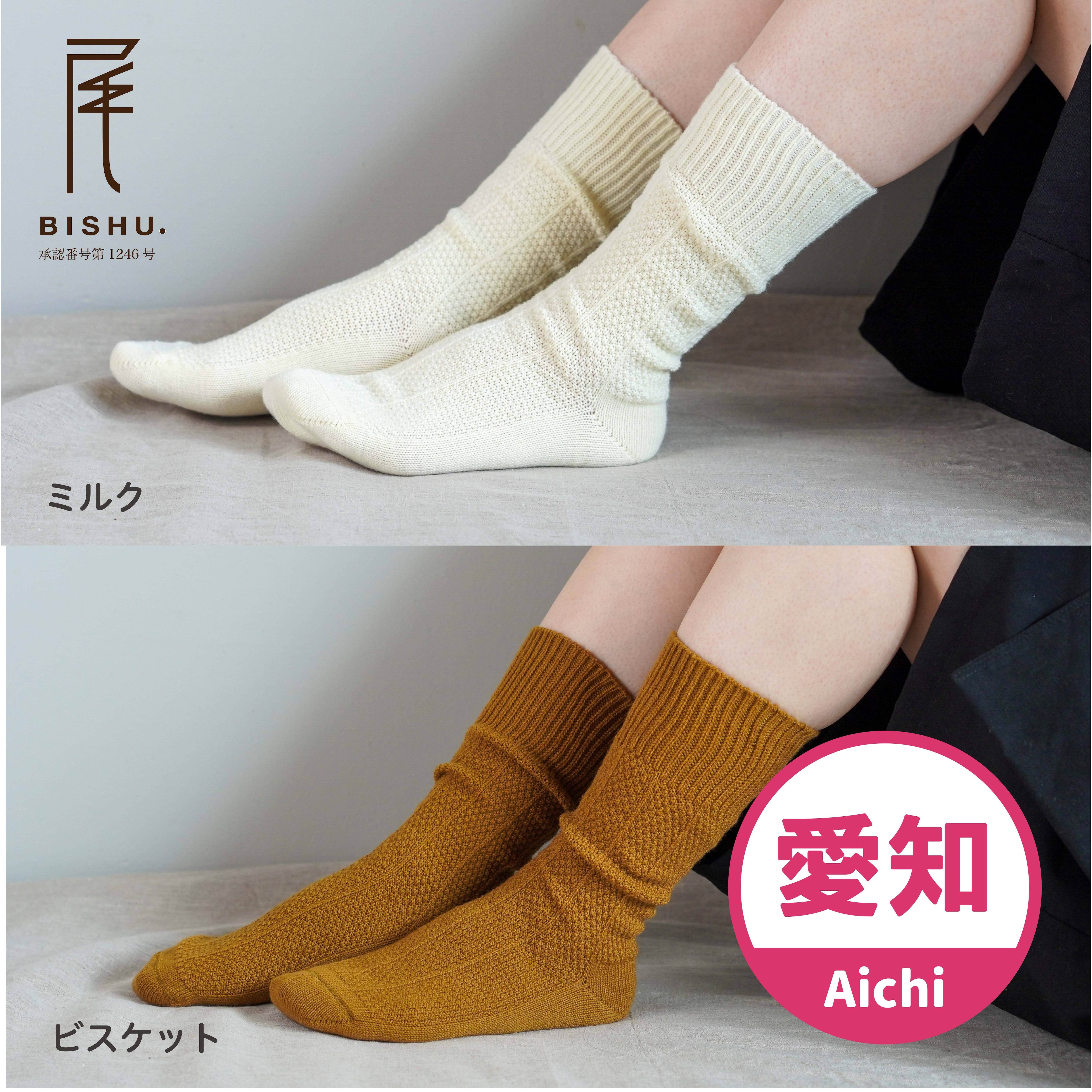 メリノウールの糸を紡ぎ、編んだまさに尾州でうまれた靴下です。