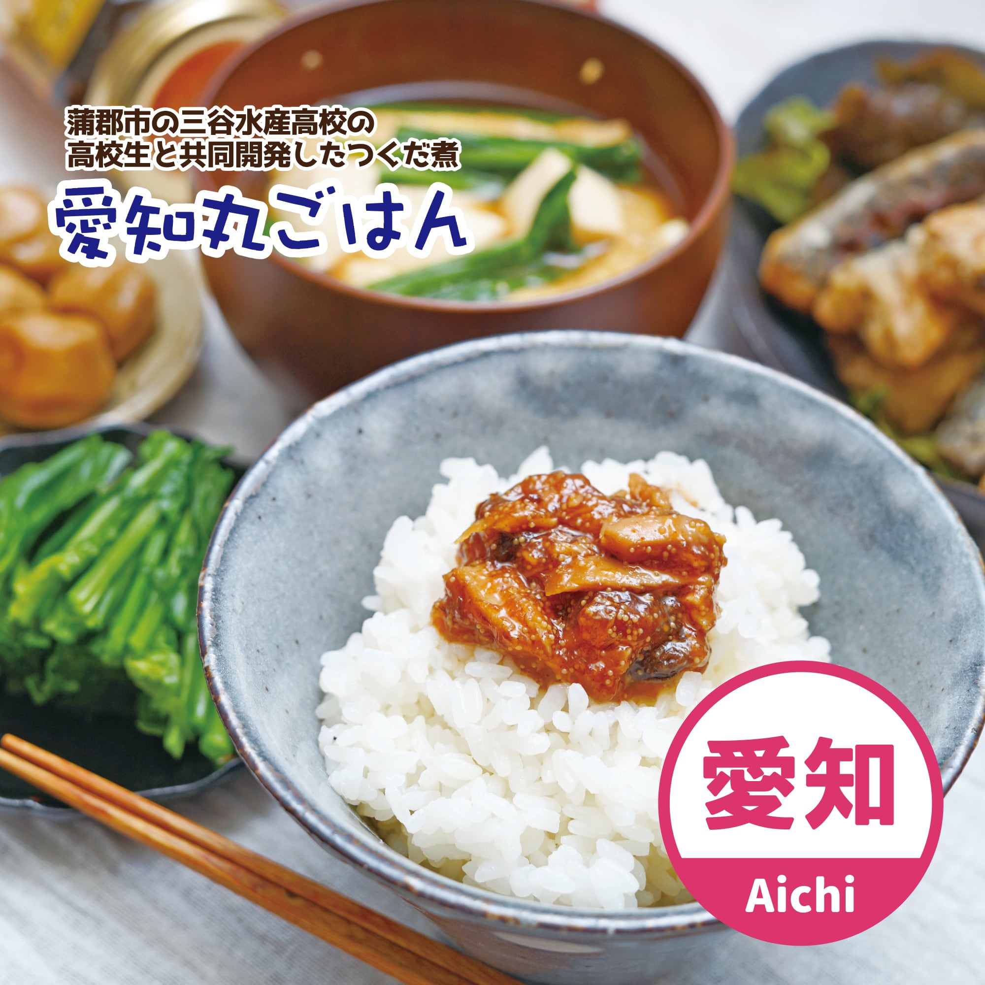 高校生と試食を一緒に行い、味・具の大きさを決め、今の味付け、具の大きさとなりました。実習船【愛知丸】と、ご飯にかけて食べる事から、【愛知丸ごはん】に決定。