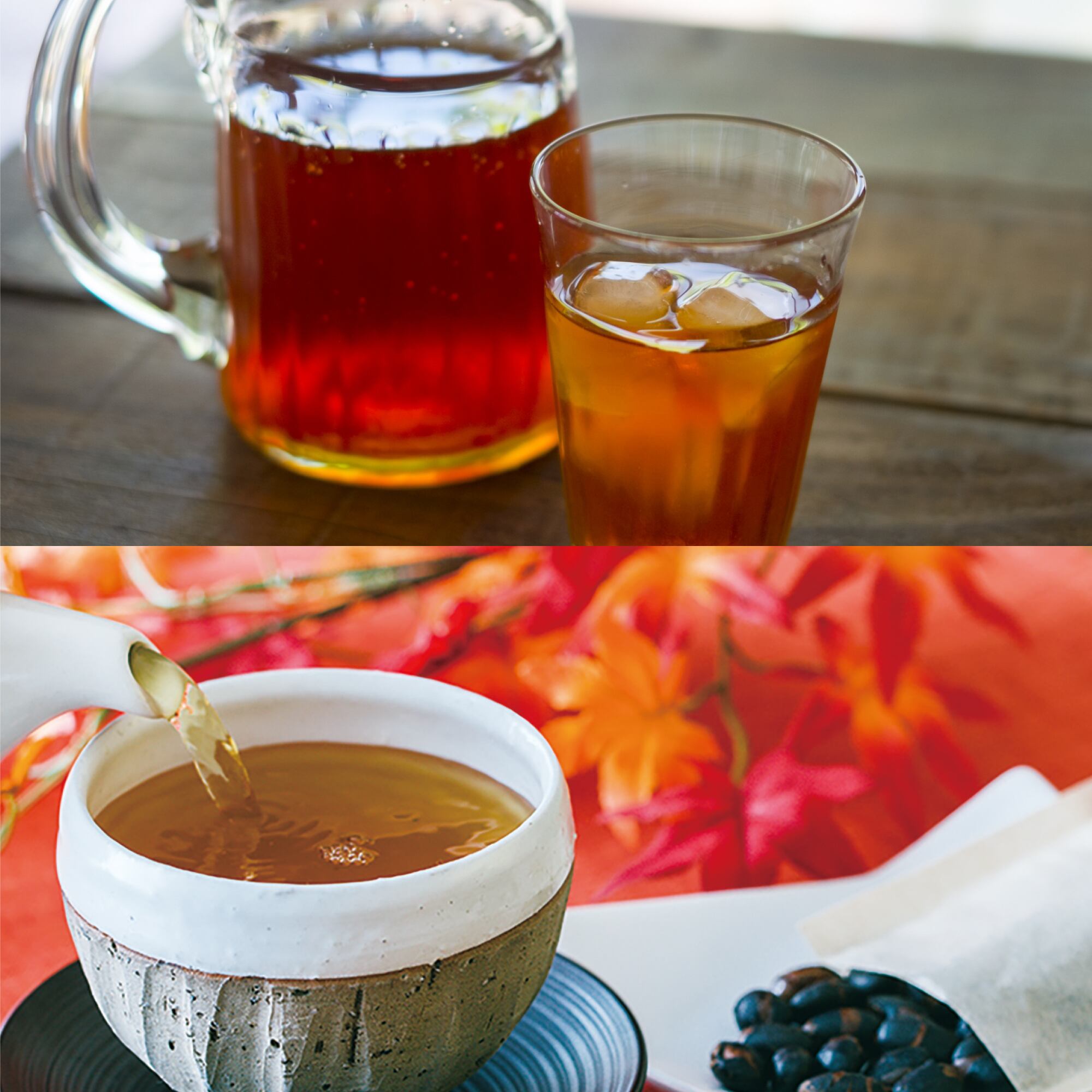 黒豆茶の芳ばしい香りと旨味は食事だけでなく、甘味物との相性も良くティータイムにもおすすめです。