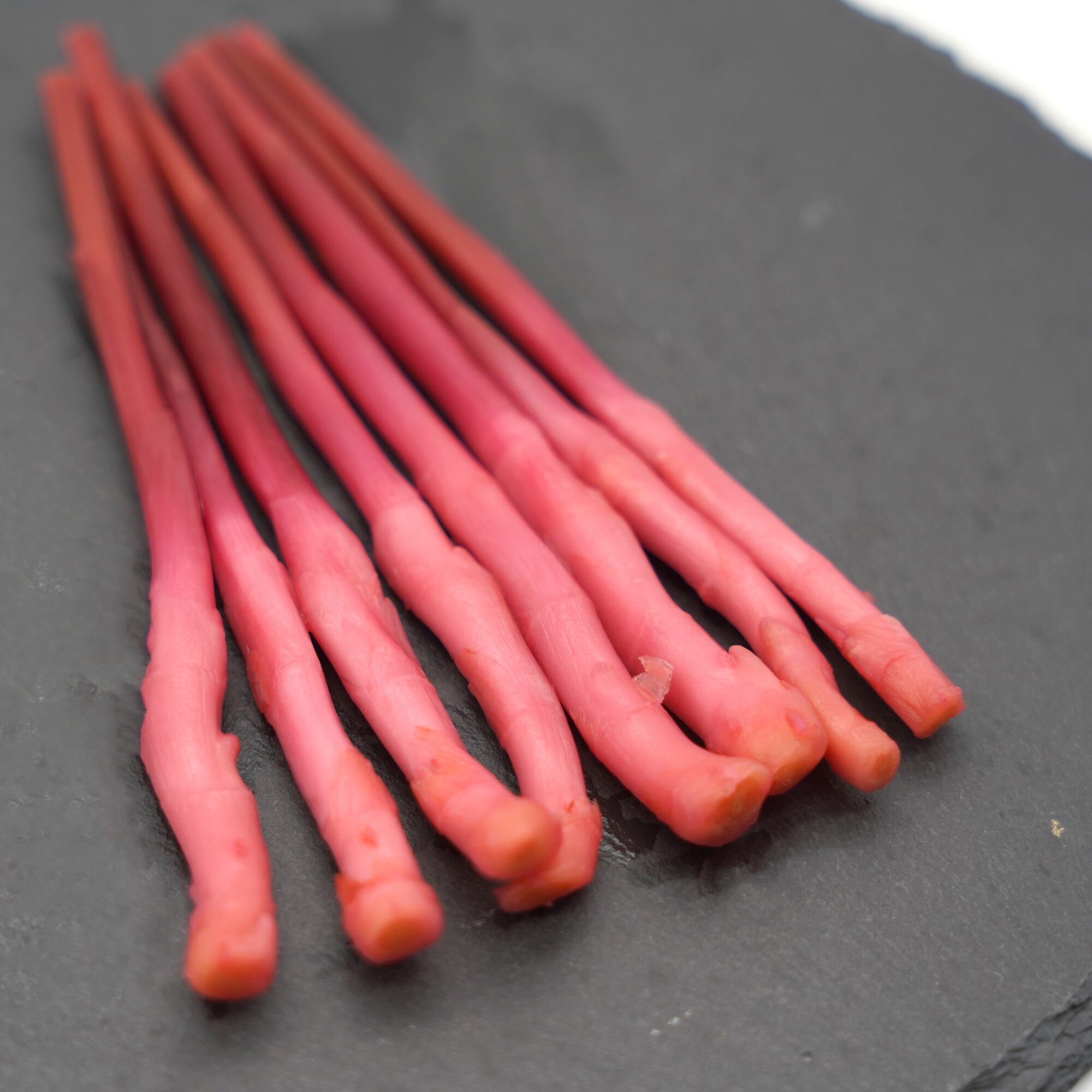 無添加無着色のピクルスで、鮮やかなピンク色は