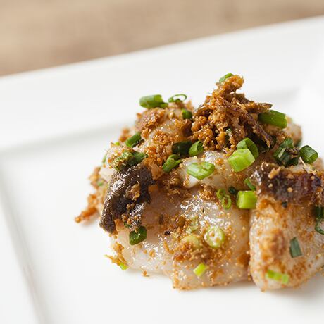 時間を掛けて丁寧に炊き上げた子持ち鮎を、一番おいしい食感を楽しめるよう手作業でほぐしました。口に含めば卵とエゴマのプチプチとした食感が面白く、食べ終わりには柚子のさっぱりとした香りが広がります。