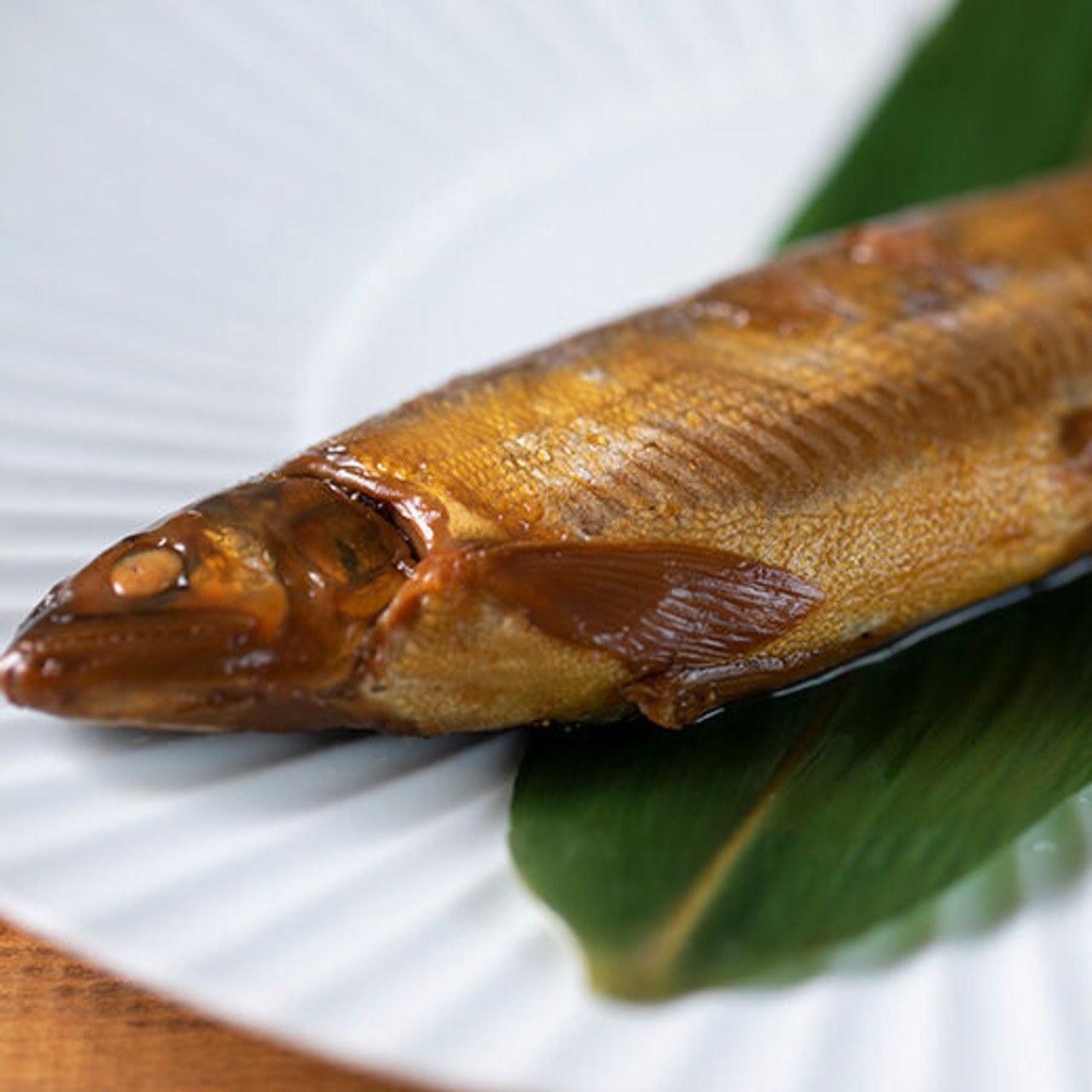 甘露煮と違って3日間ゆっくりと炊き上げるため、表面近くからから中まで均一に同じ色で炊き上がり、中まで柔らかい食感に仕上がっています。見た目と違い味は辛すぎず、甘ったるくもなく、老若男女のお口に合う優しい味になっています。もちろん、世界農業遺産「長良川の鮎」を水の都「大垣の地下水」で育て上げた鮎だけを使用しています。
