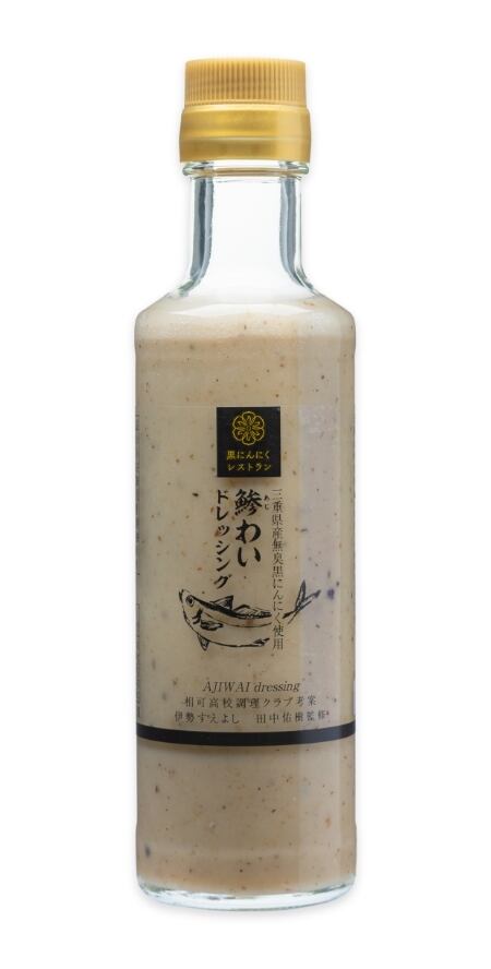 三重県産鯵節を丸ごと粉末にし、三重県産無臭黒にんにくのコクと旨みを合わせたフレンチタイプのドレッシングです。海の旨味と爽やかな酸味が融合した新感覚のドレッシングです。