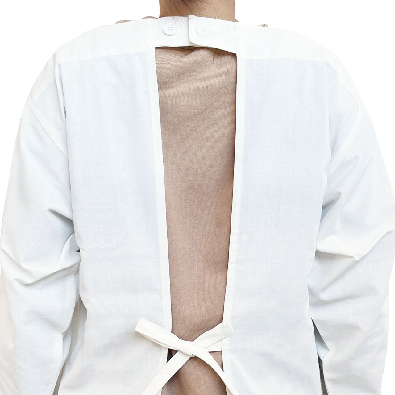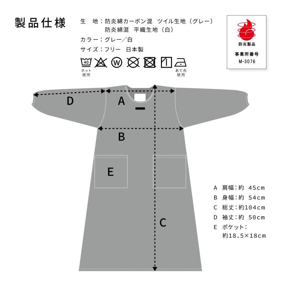 \ 日本防炎協会認定品 / 防炎 割烹着(ホワイト)【愛知県産】
