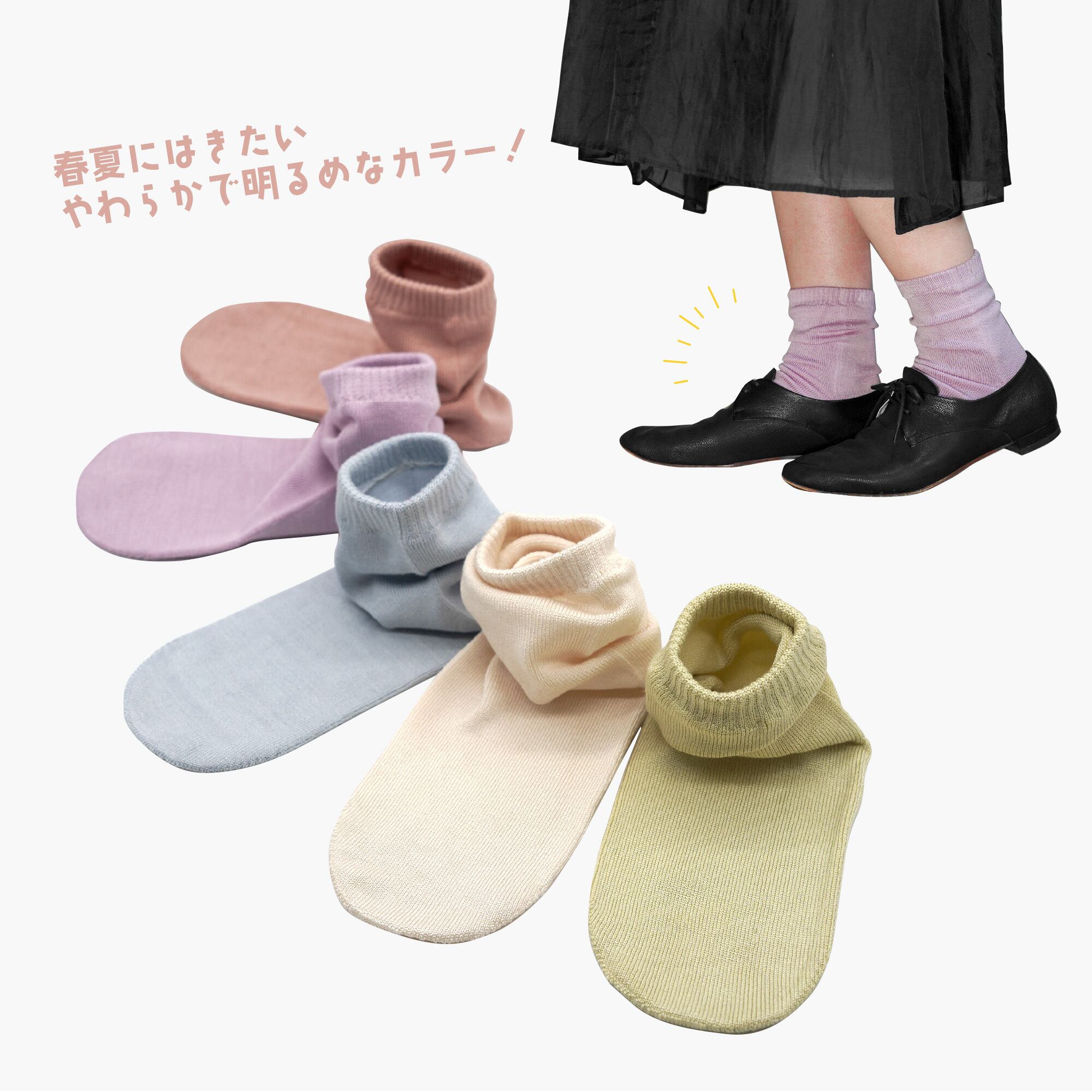 シルク90%のぜいたくな履き心地が楽しめるシルクのくつした。