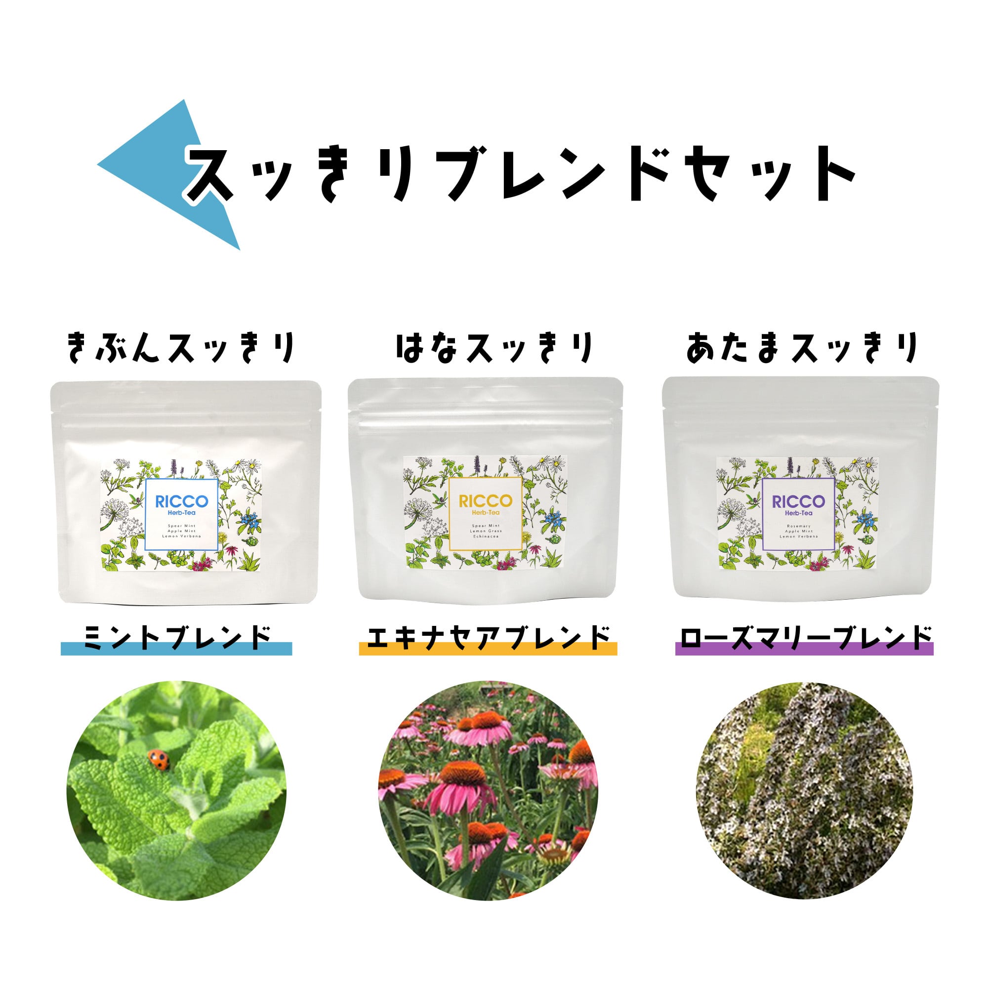 ・エキナセアブレンド…スペアミント、エキナセア、レモングラス