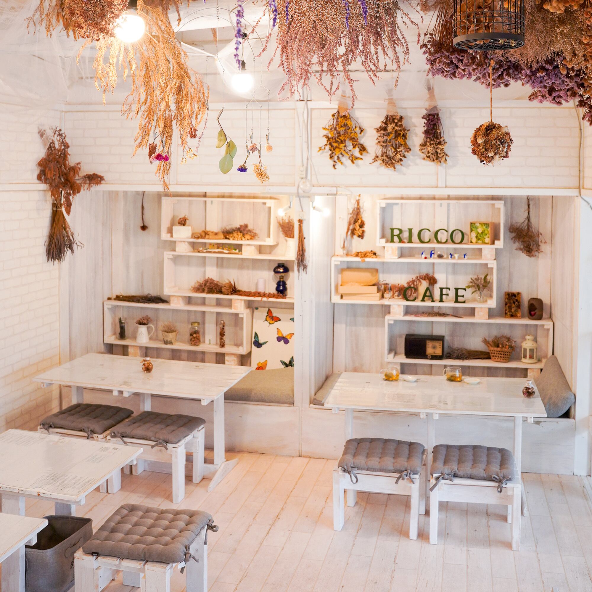 フォトジェニックな店内にはドライフラワーがいたるところに