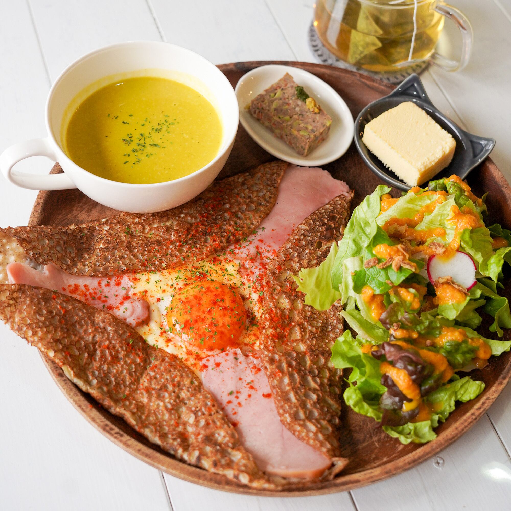 ハーブ農園併設のカフェではそば粉100%のガレットや