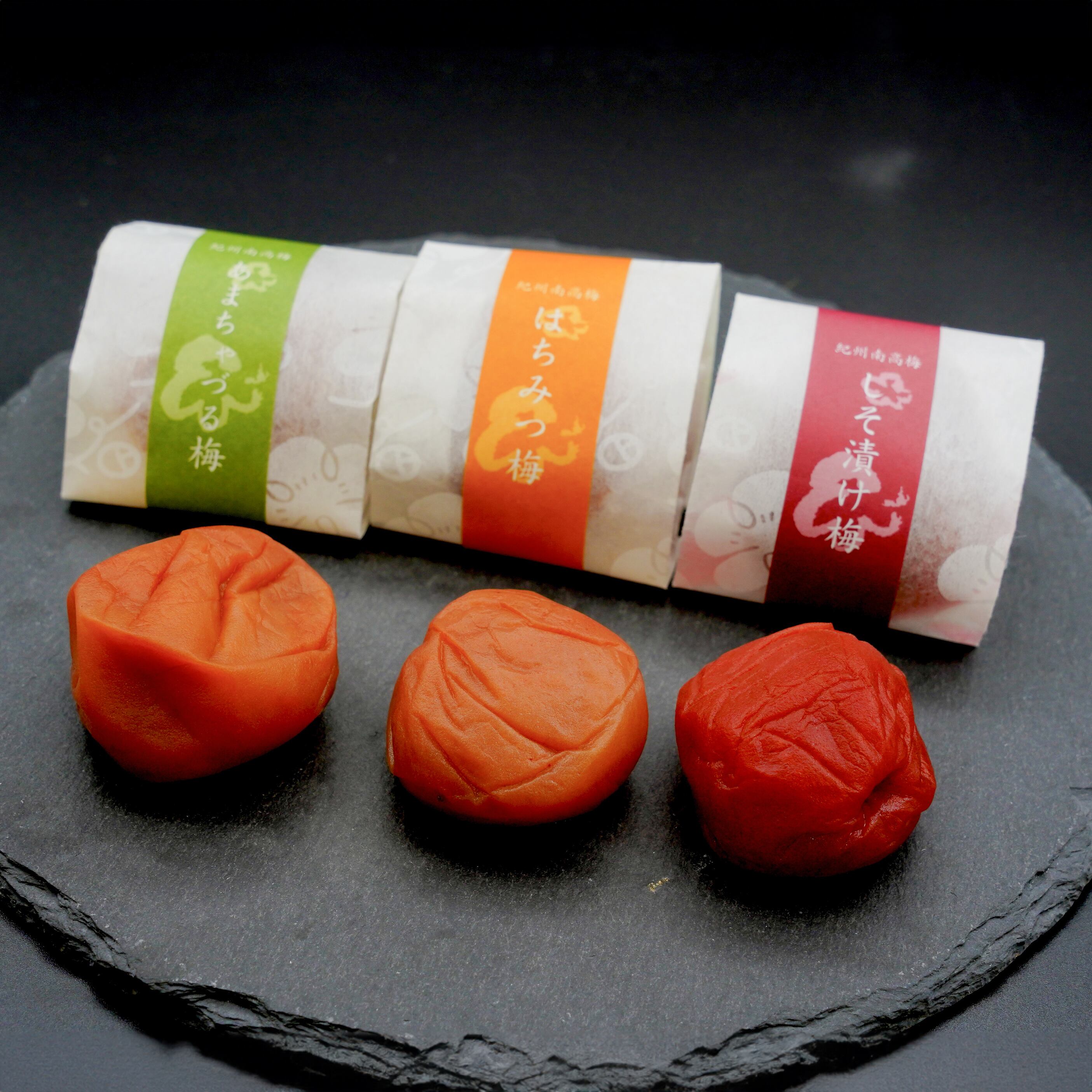 はちみつ梅・しそ梅・あまちゃづる梅の3種類を和紙にて