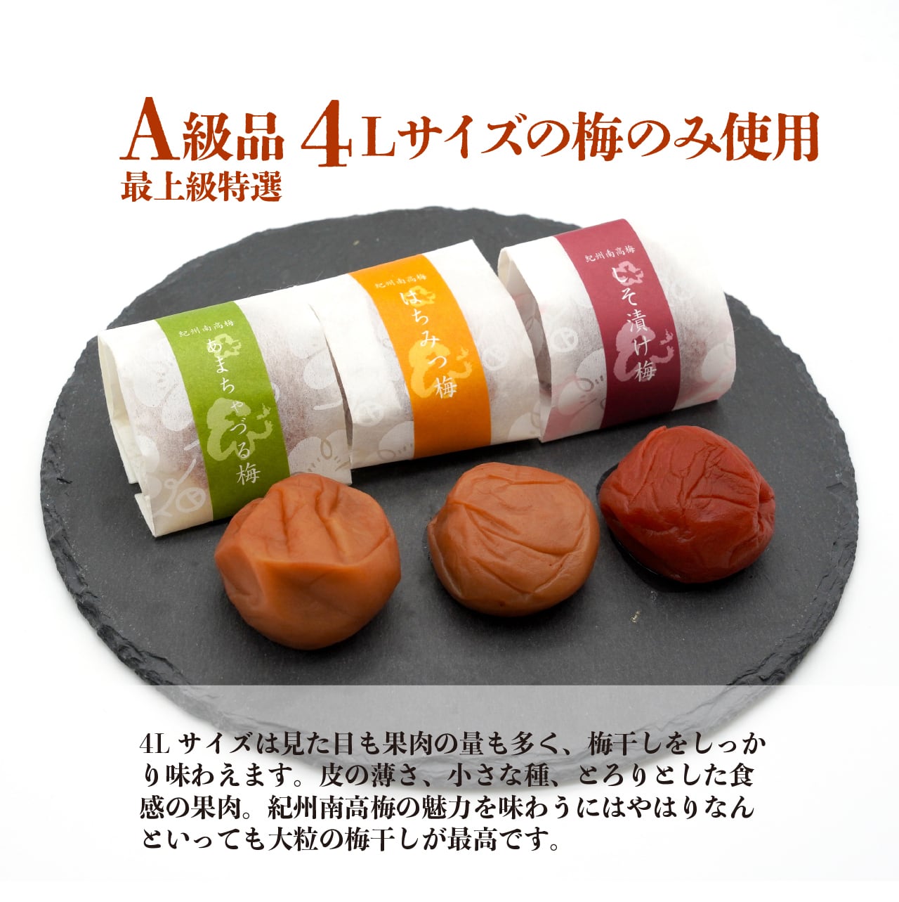 最上級の紀州南高梅、中でも特大サイズ(4L)のみを使用した