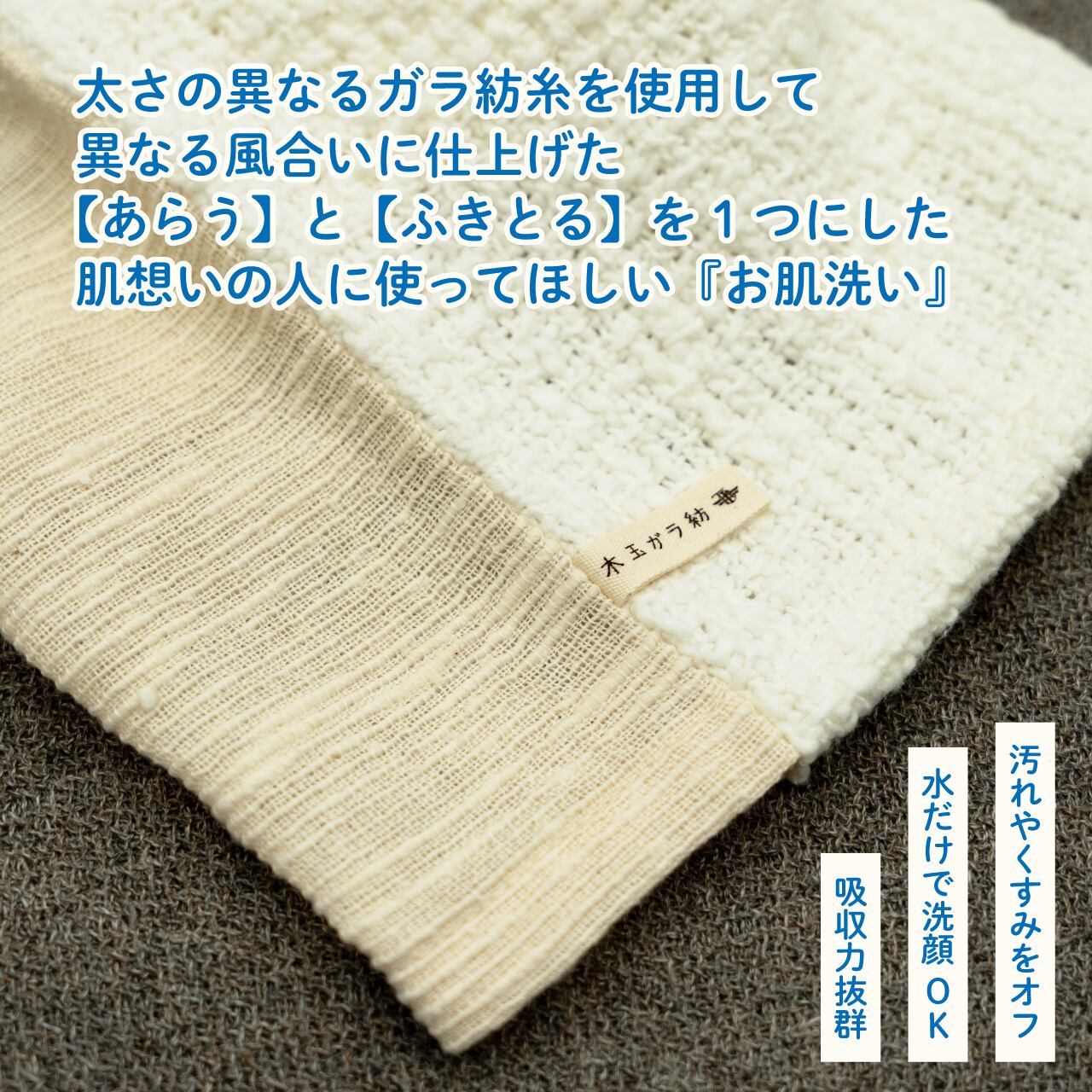 ガラ紡のでこぽことした糸が、優しく汚れや